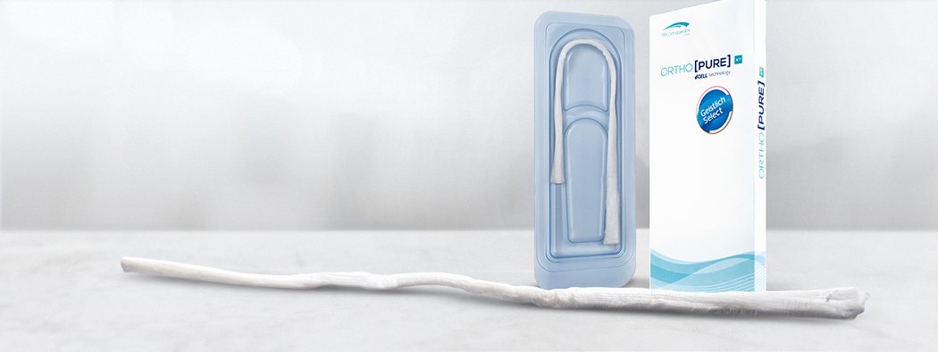 The OrthoPure® XT device is a porcine tendon graft which has been treated using a patented decellularisation processing technology (dCELL®) to remove all viable cells and native components which have the potential to elicit an immune response. This decellularisation technology gently cleanses the tissue whilst preserving the natural collagen architecture. The OrthoPure® XT is an off-the-shelf device for knee ligament reconstruction that negates the need to take tissues from the patient, or to invest in complex and costly donor procurement processes. The result is a reduction in operative time, no donor site morbidity and associated muscle strength deficiencies for the patient, no specialist storage requirements and the flexibility to have the product ready to use off the shelf at any time. The OrthoPure® XT device is a soft tissue graft that is specifically designed to be implanted using standard surgical techniques. It is compatible with standard instrumentation and with common soft tissue fixation devices for both femoral and tibial attachment. The handling properties are also comparable to commonly used soft tissue grafts (allograft or autograft).