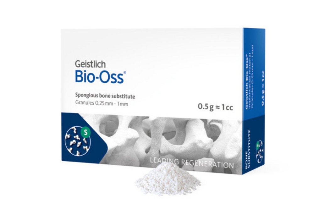 Higher implant survival and volume stability start with Geistlich Bio-Oss® – the original natural bone graft substitute for dental implants and bone regeneration. Its bovine-derived granules provide outstanding osteoconductivity, supporting predictable and effective bone regeneration for long-term clinical success. Recognized by clinicians worldwide, it is a reliable dental bone grafting material for a broad range of indications.1-11