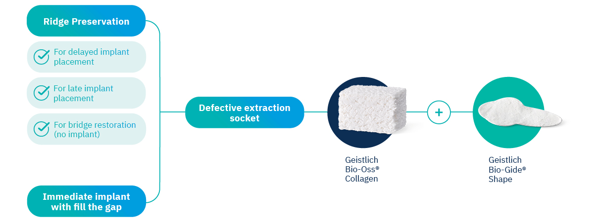 Idéal pour la préservation de crête dans les alvéoles d'extraction présentant une paroi vestibulaire défectueuse