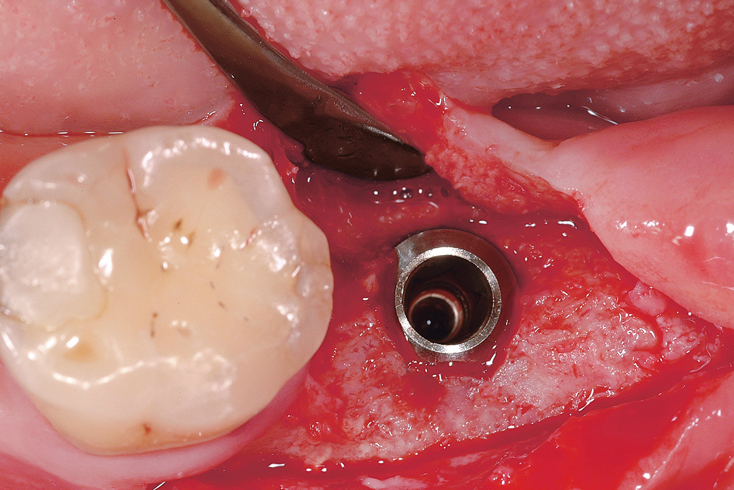 Inserimento ritardato di impianto con una parete ossea vestibolare sottile e con difetto (approccio con guarigione aperta)