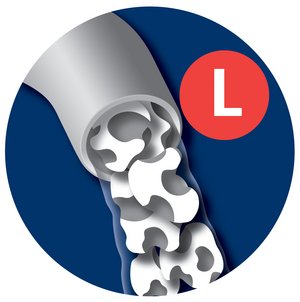 La differenza tra le due dimensioni dei granuli sta nel volume che riempiono; le stesse prestazioni cliniche si ottengono con granuli piccoli o grandi. 15,16